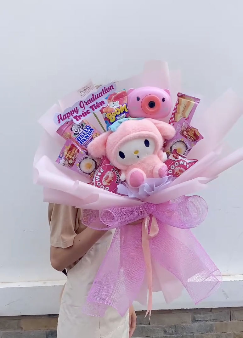 💝 Một bó quà – vừa là hoa, vừa là đồ chơi, vừa có bánh kẹo, đảm bảo ai nhận cũng phải “tan chảy”.